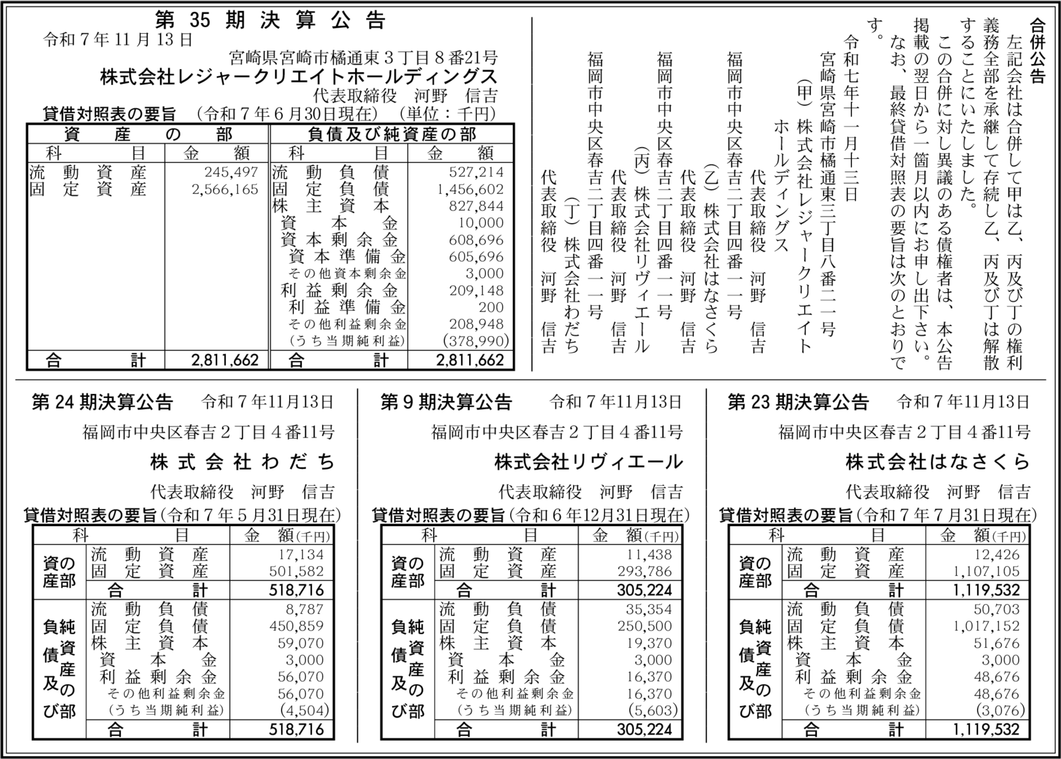 株式会社はなさくら 福岡市中央区 【2025年7月期】 |