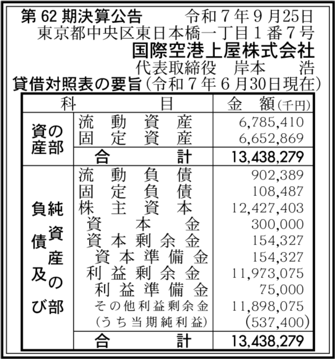立石ビジネスサービス株式会社 東京都中央区 【2025年7月期】 |