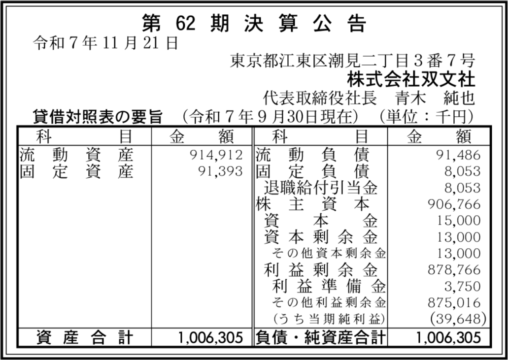 | 総資産 | 10億630万5,000円 (+2.73%) |
