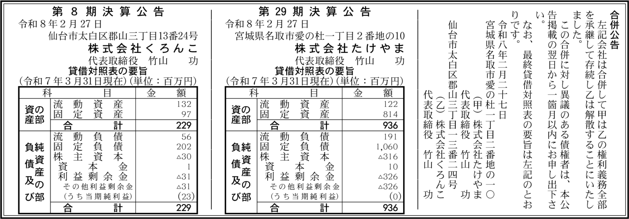 株式会社たけやま 宮城県名取市 【2025年3月期】 |