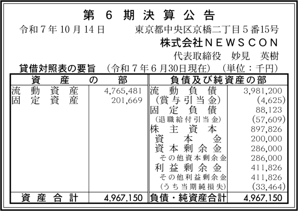 会社名 | 株式会社NEWSCON |