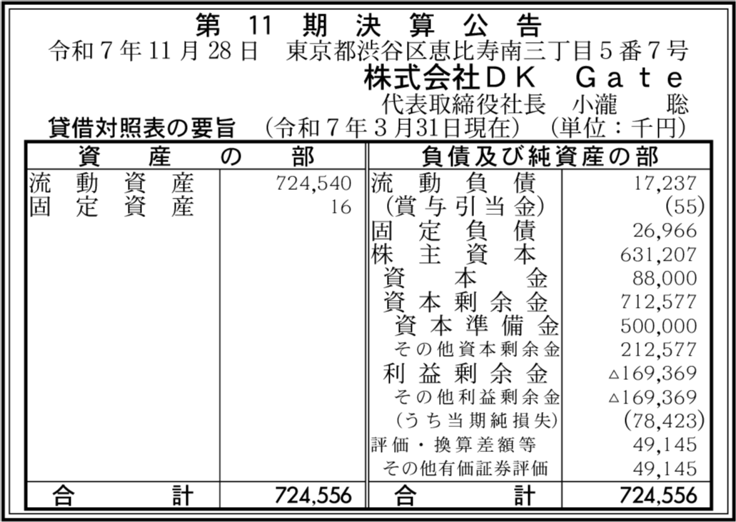 株式会社DG Strategic Investment 東京都渋谷区 【2025年3月期】 |