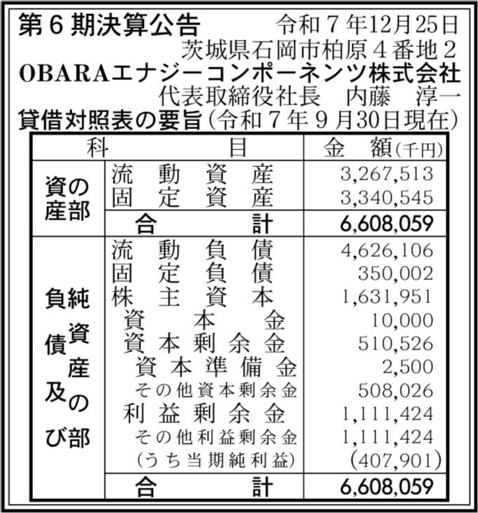 | 会社名 | OBARAエナジーコンポーネンツ株式会社 |
