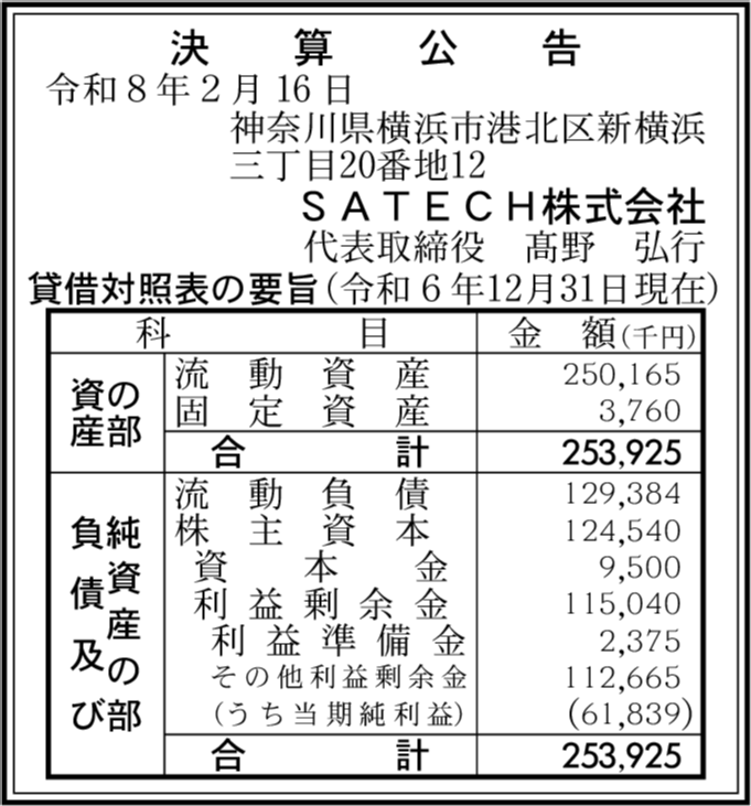 | 会社名 | SATECH株式会社 |