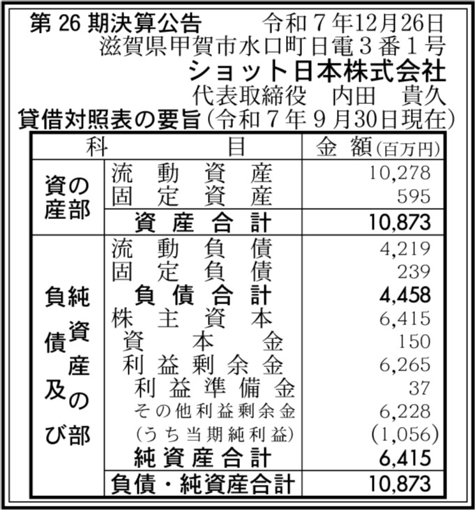 日新薬品工業株式会社 滋賀県甲賀市 【2025年9月期】 |