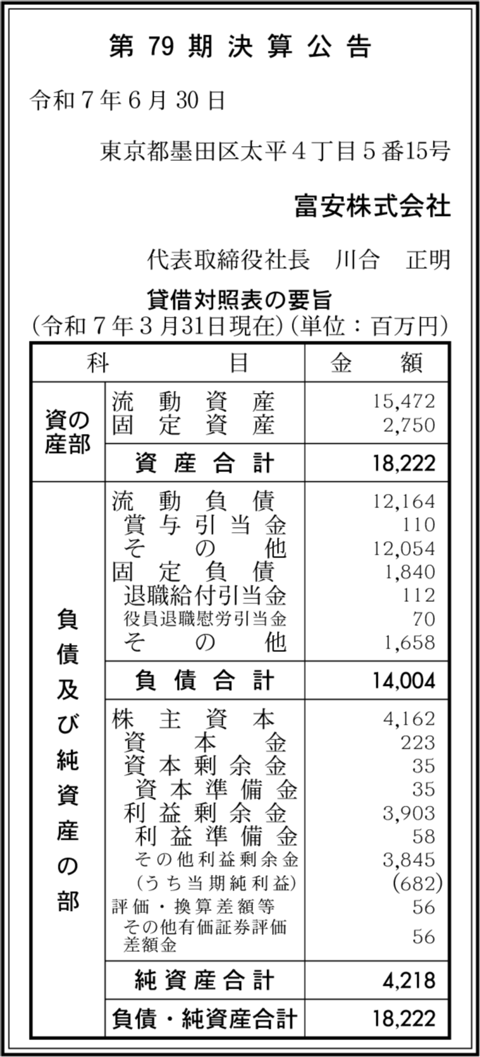 | 会社名 | 富安株式会社 |