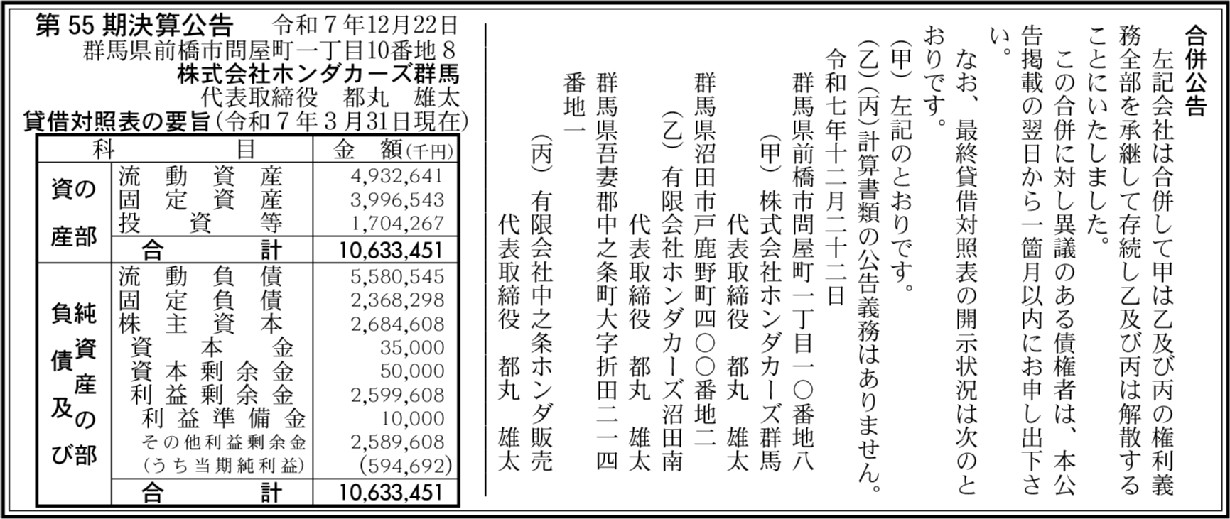 ホンダ群馬販売株式会社閉鎖済み 群馬県高崎市 【2024年3月期】 |