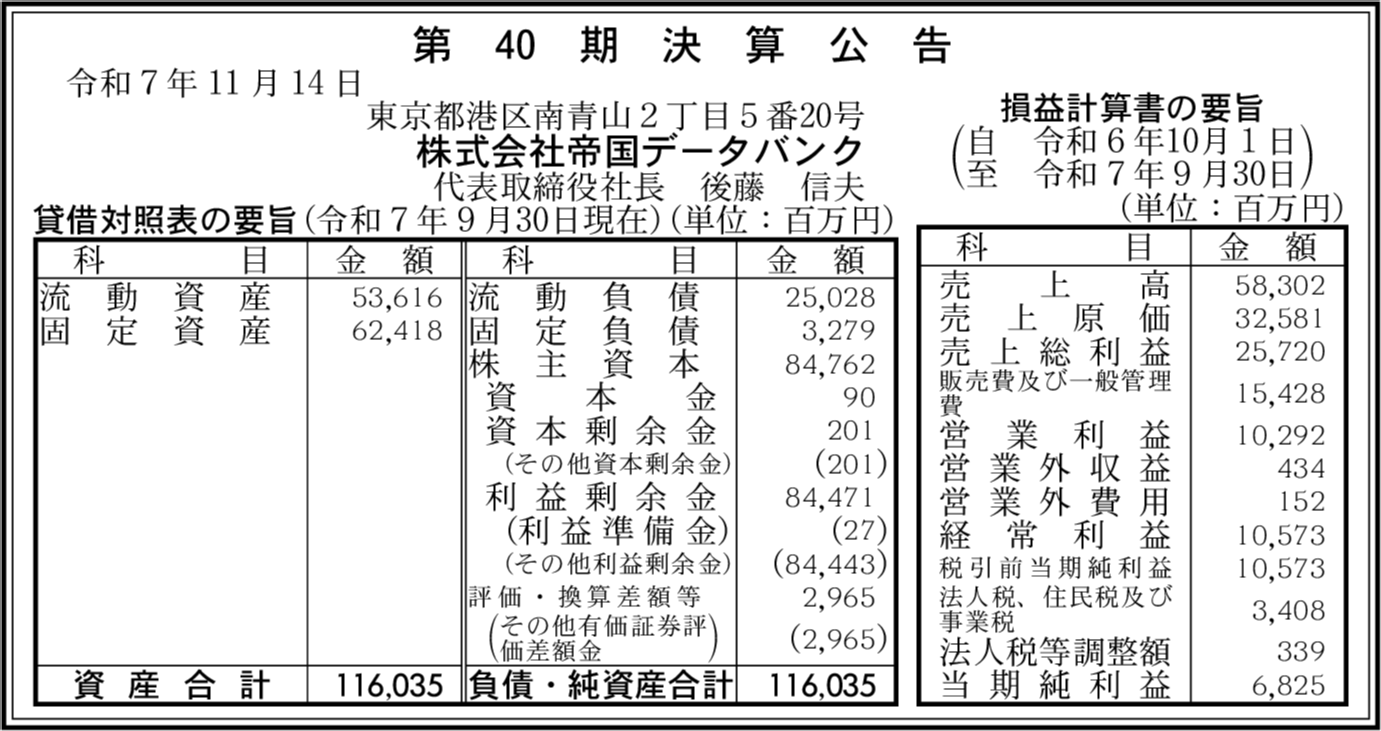 | 会社名 | 株式会社帝国データバンク |