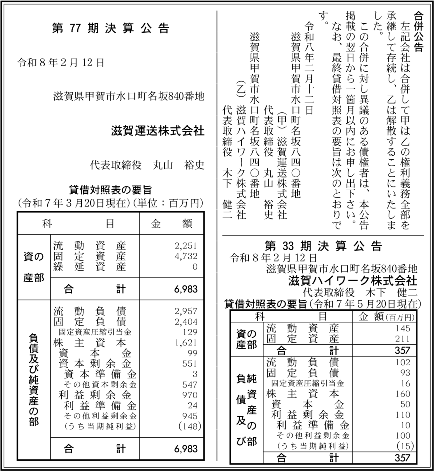 滋賀ハイワーク株式会社 滋賀県甲賀市 【2025年5月期】 |