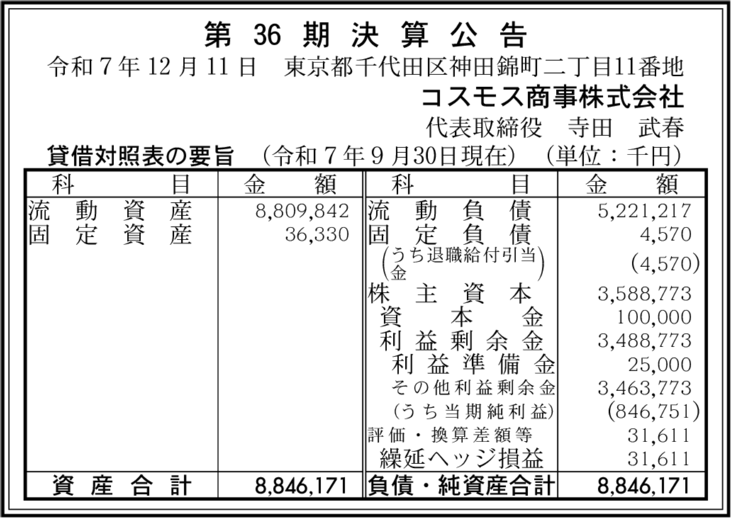 | 会社名 | コスモス商事株式会社 |