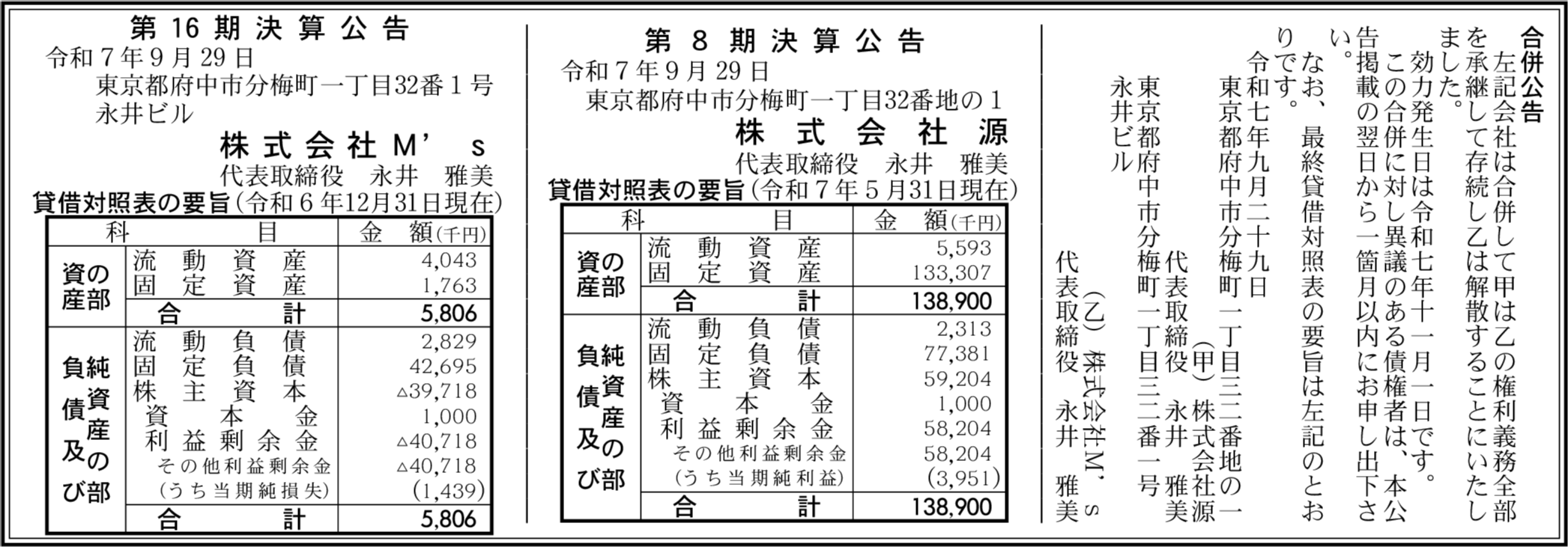 株式会社M’s 東京都府中市 【2024年12月期】 |
