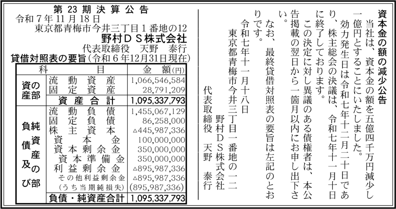 | 会社名 | 野村DS株式会社 |