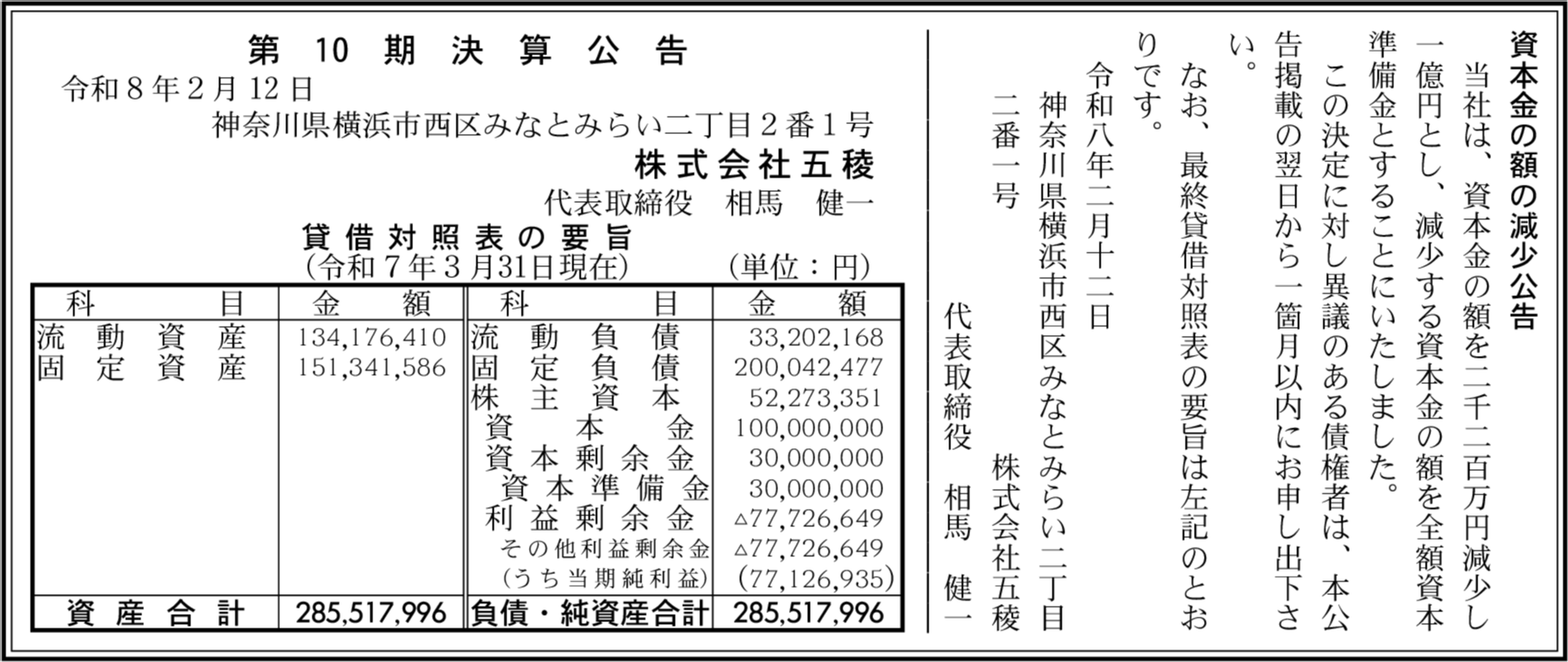 | 利益剰余金 | ▲7,772万6,649円 (赤字縮小) |