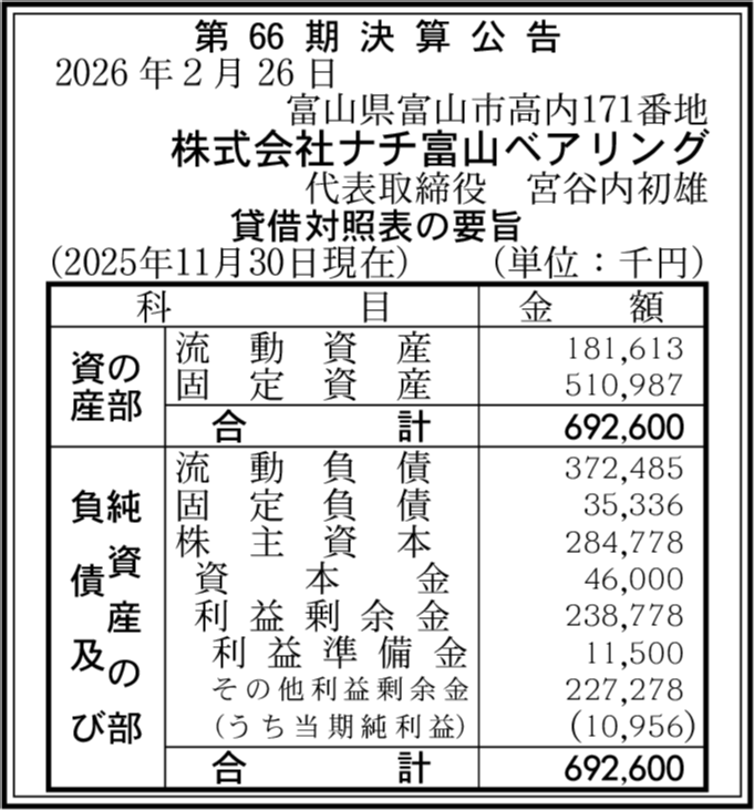 株式会社ナチツールエンジニアリング 富山県富山市 【2025年11月期】 |
