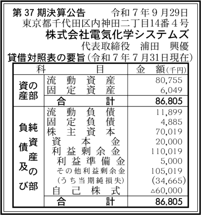 | 会社名 | 株式会社電気化学システムズ |