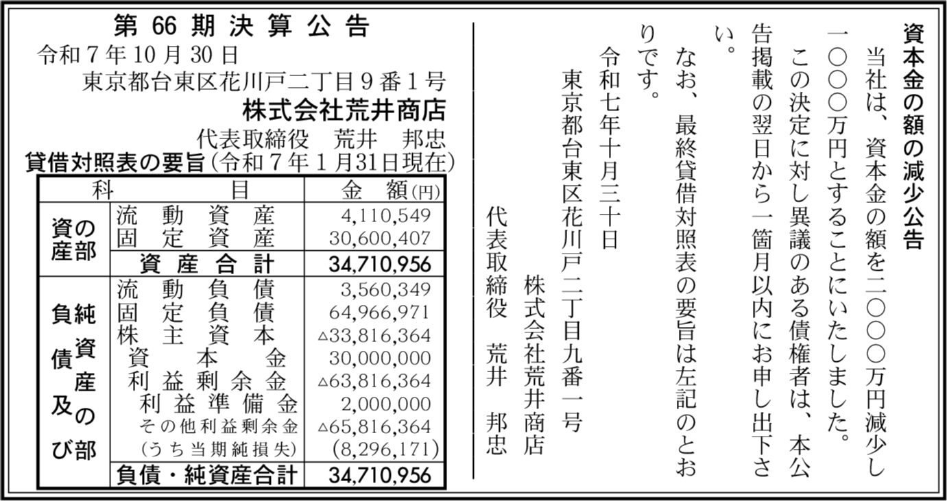| 株式会社さすがや 東京都台東区 【2025年6月期】 | △1億3,332万6,202円 | 1,833万8,800円 | 10億3,666万8,955円 |