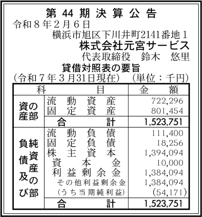 | 会社名 | 株式会社元宮サービス |