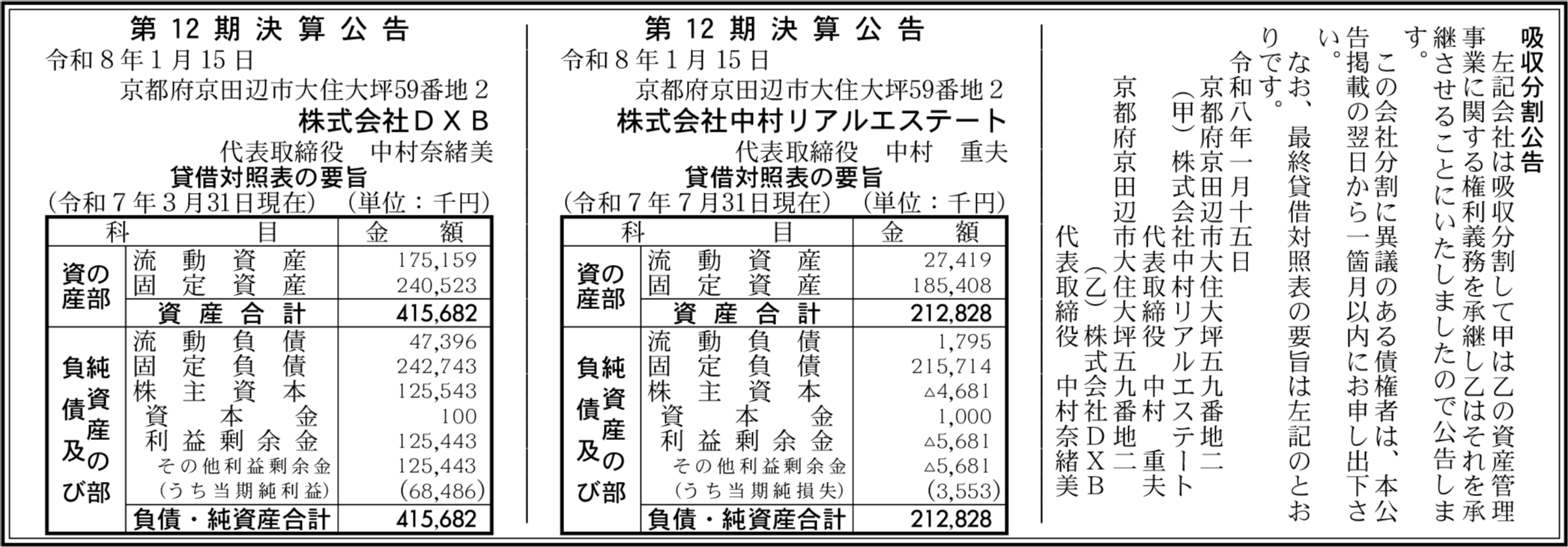 株式会社DXB 京都府京田辺市 【2025年3月期】 |