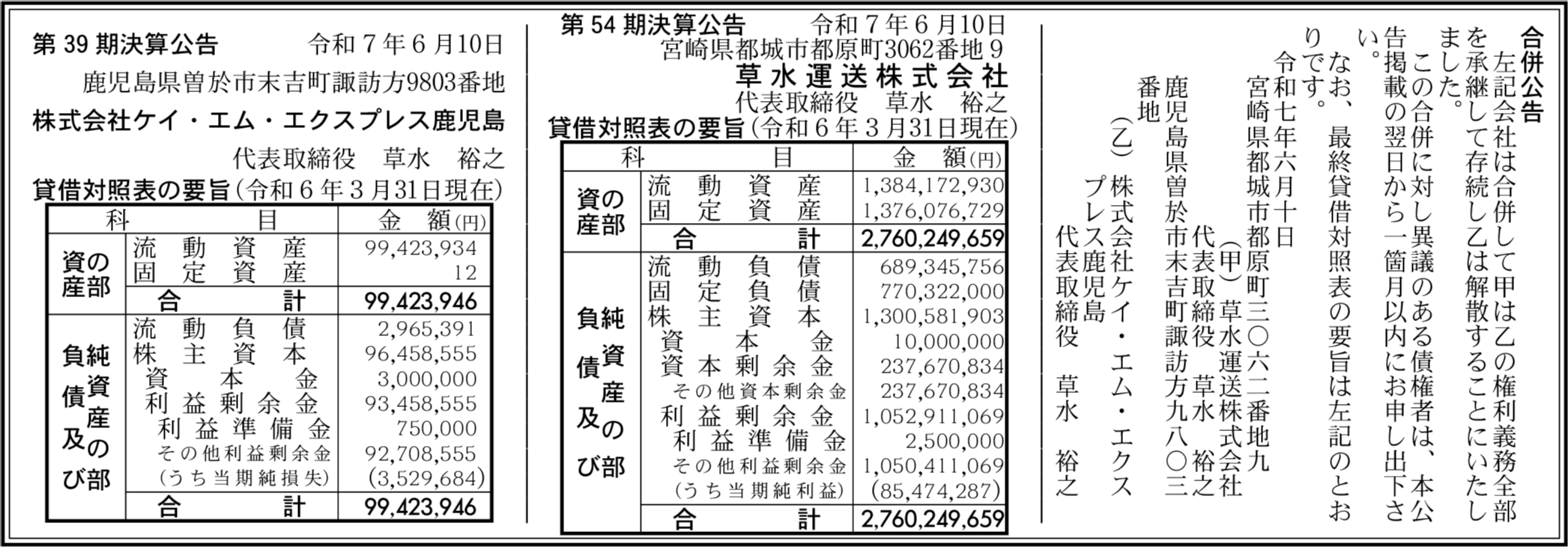 株式会社ケイ・エム・エクスプレス宮崎 宮崎県都城市 【2024年3月期】 |