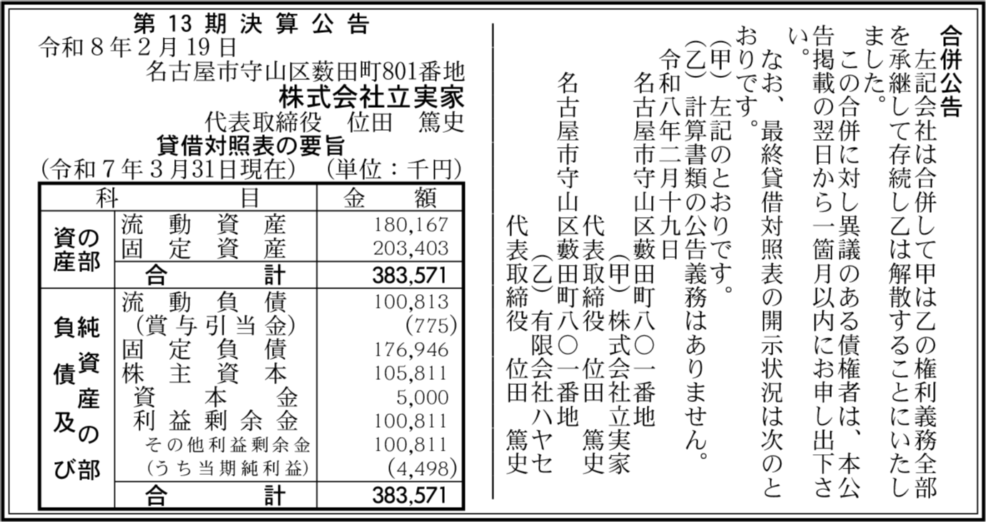 | 会社名 | 株式会社立実家 |