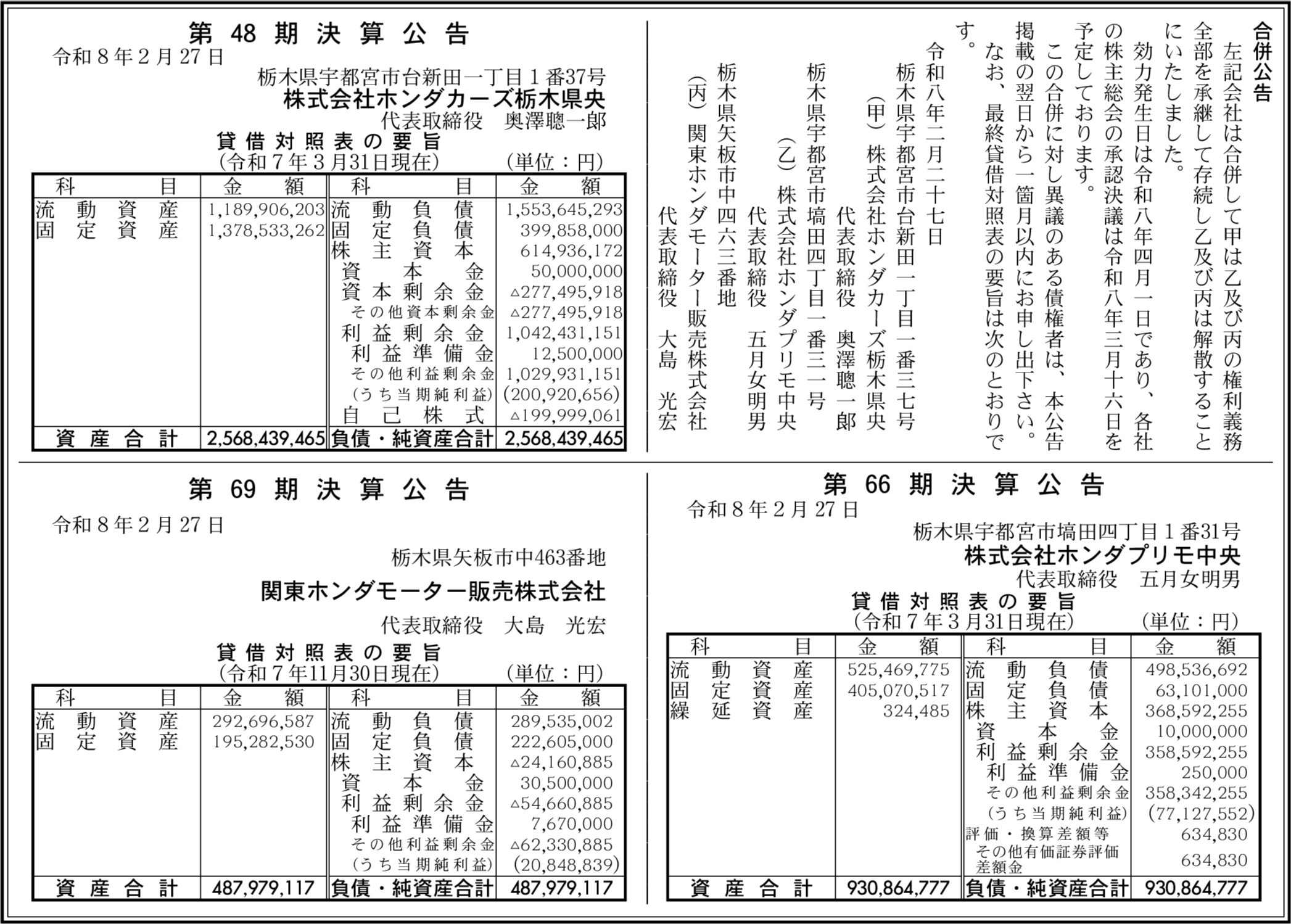 株式会社ホンダプリモ中央 栃木県宇都宮市 【2025年3月期】 |