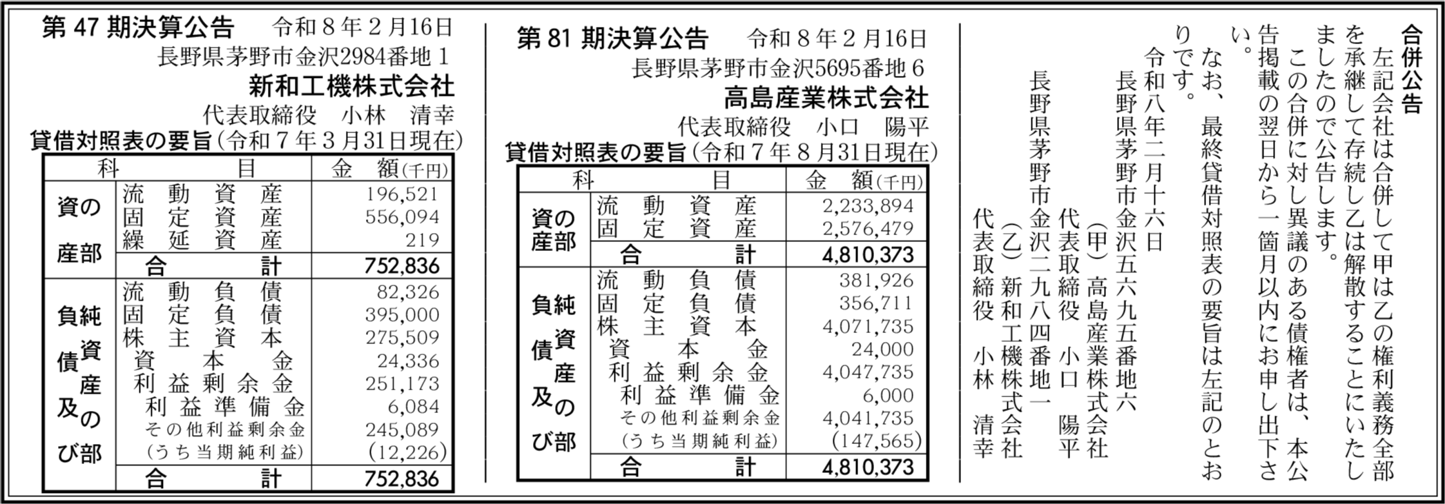 新和工機株式会社 長野県茅野市 【2025年3月期】 |