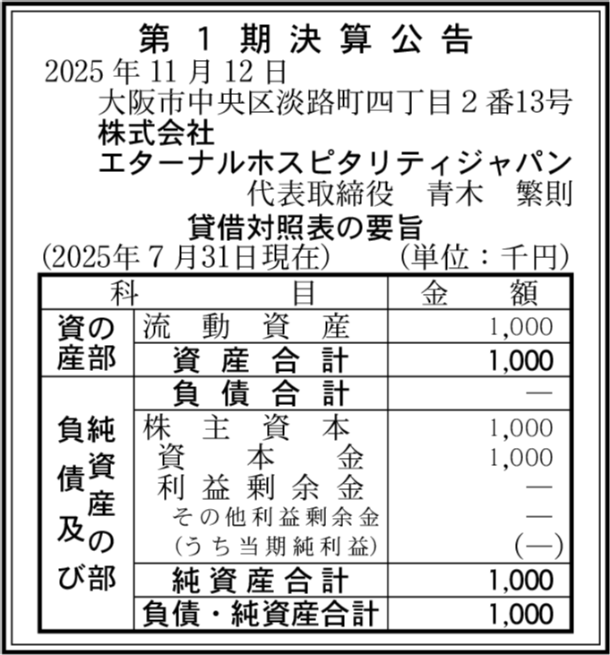 株式会社ei 大阪市中央区 【2025年7月期】 |
