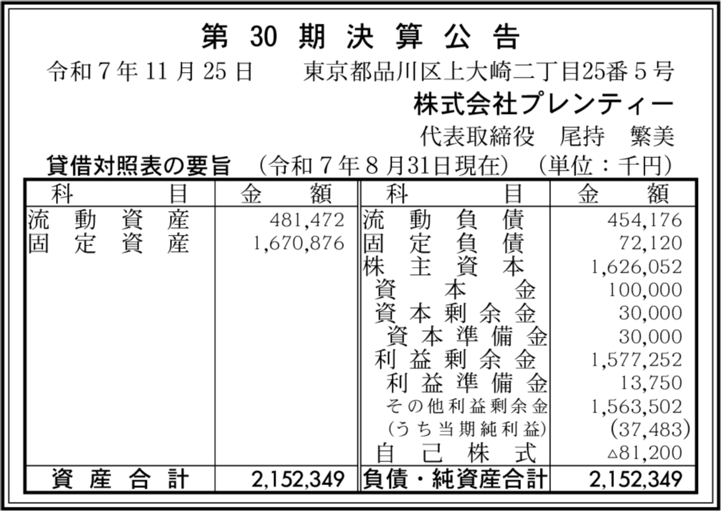 | 利益剰余金 | 15億7,725万2,000円 (+1.25%) |