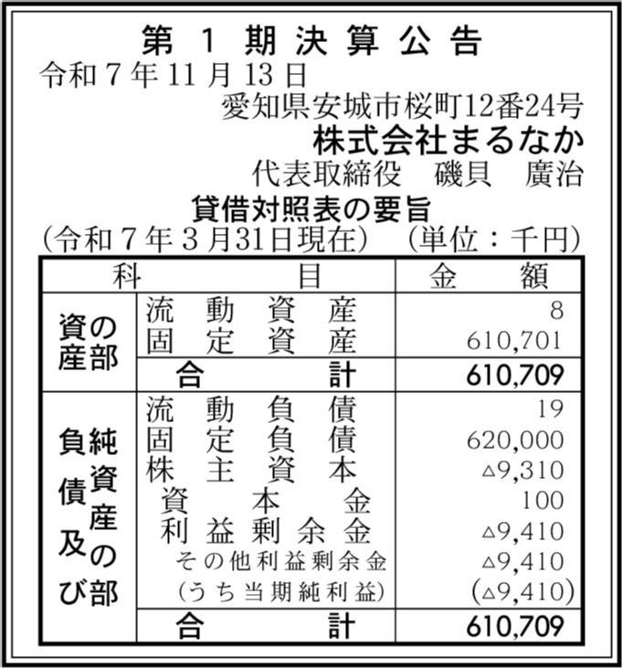 丸中鍛工株式会社 愛知県安城市 【2024年3月期】 |