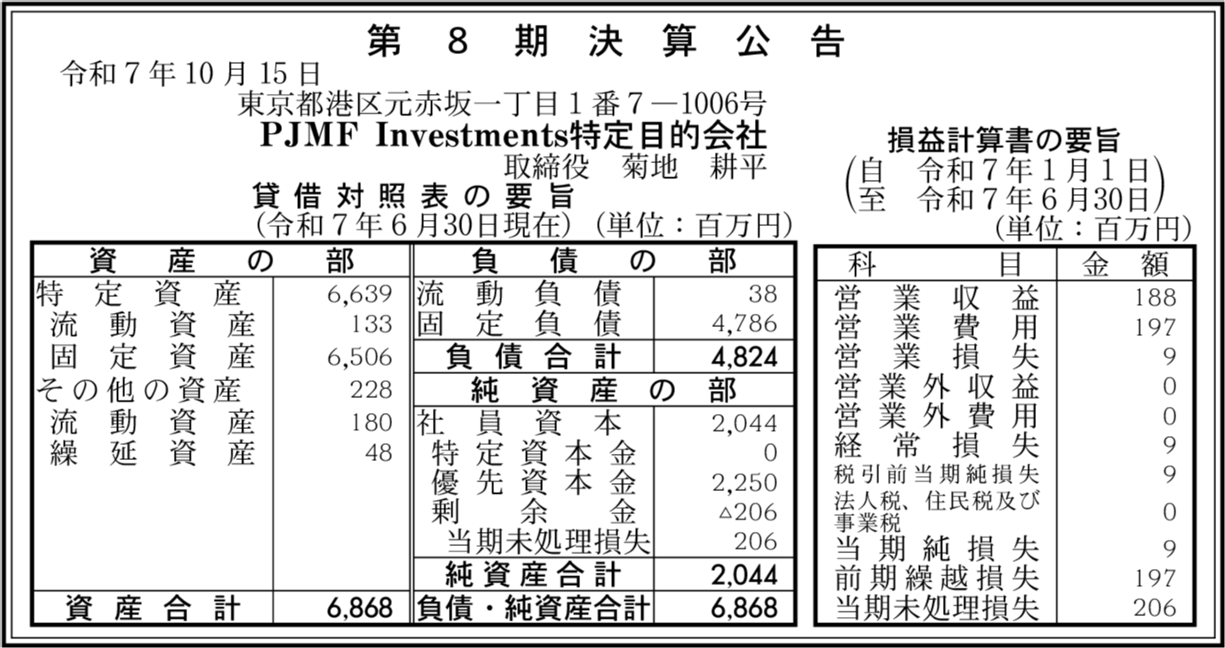 PJMF Stellar合同会社 東京都港区 【2025年6月期】 |