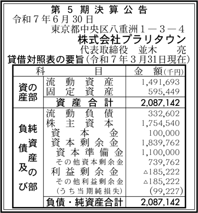 | 利益剰余金 | ▲1億8,522万2,000円 (赤字拡大) |