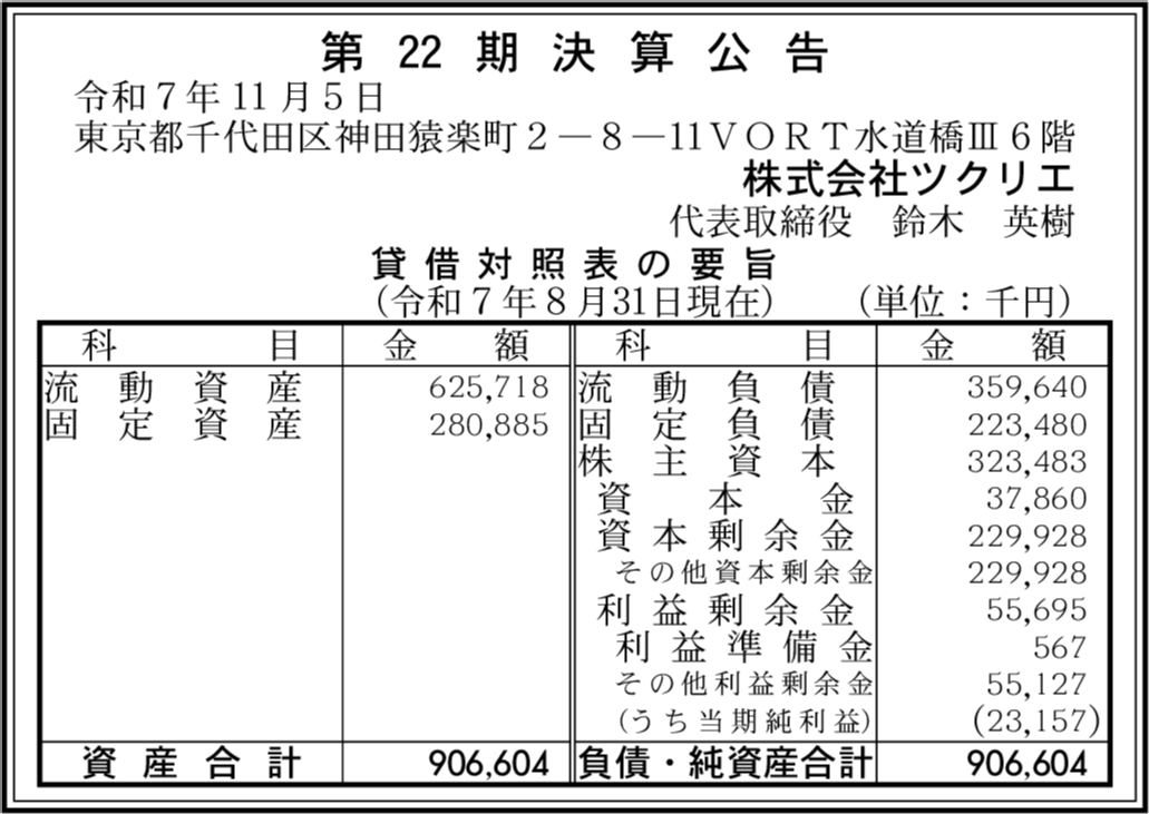 つばさ設計株式会社 東京都千代田区 【2025年5月期】 |