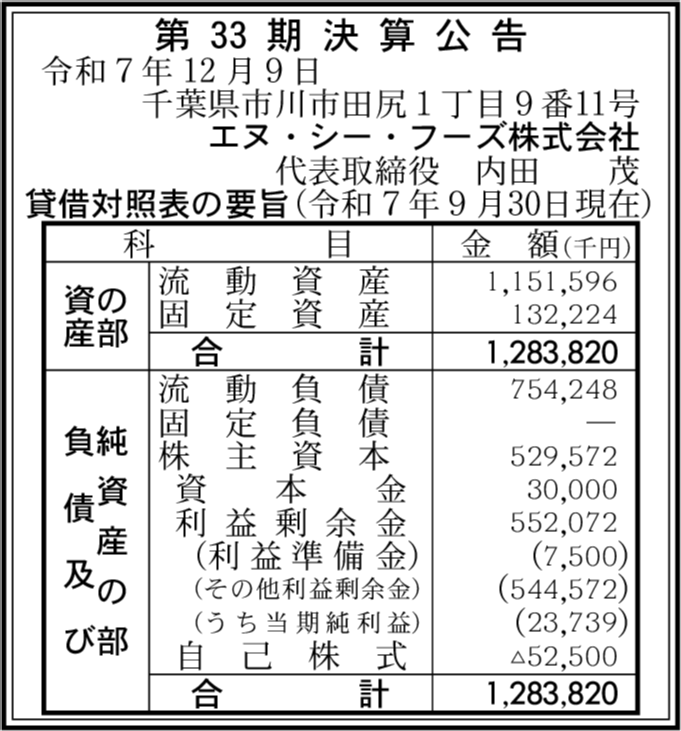新日本設備株式会社 千葉県市川市 【2025年9月期】 |