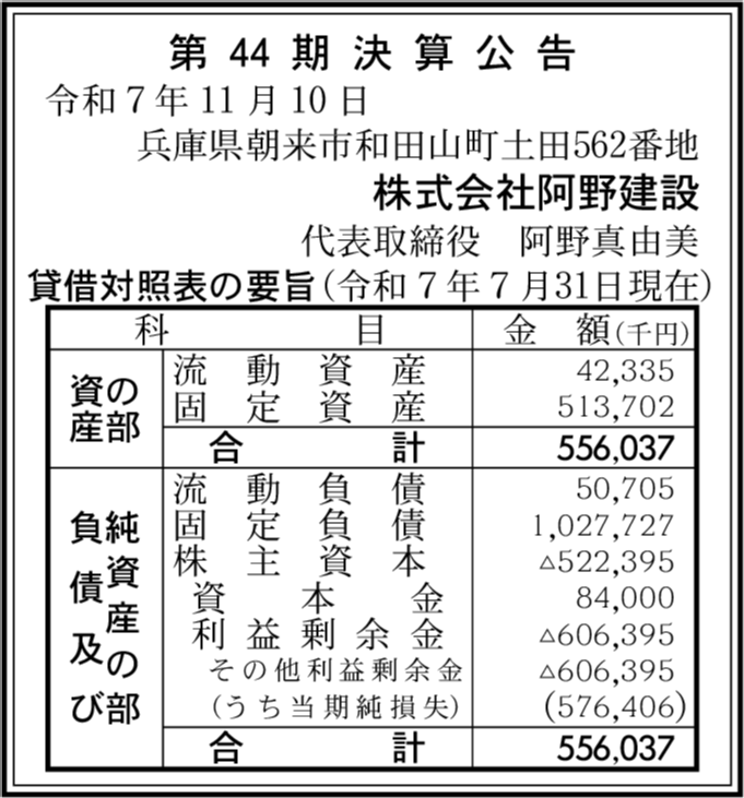 | 会社名 | 株式会社阿野建設 |