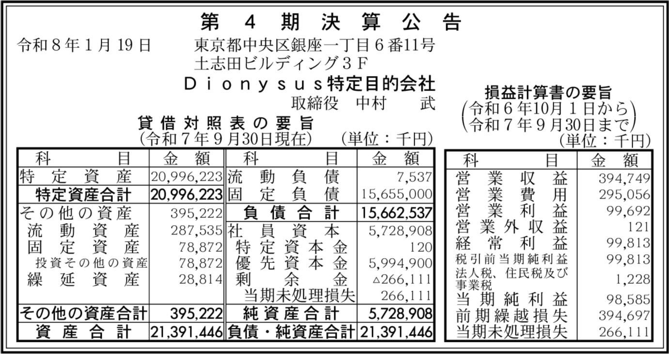 ACPトライベッカ特定目的会社 東京都港区 【2025年9月期】 |