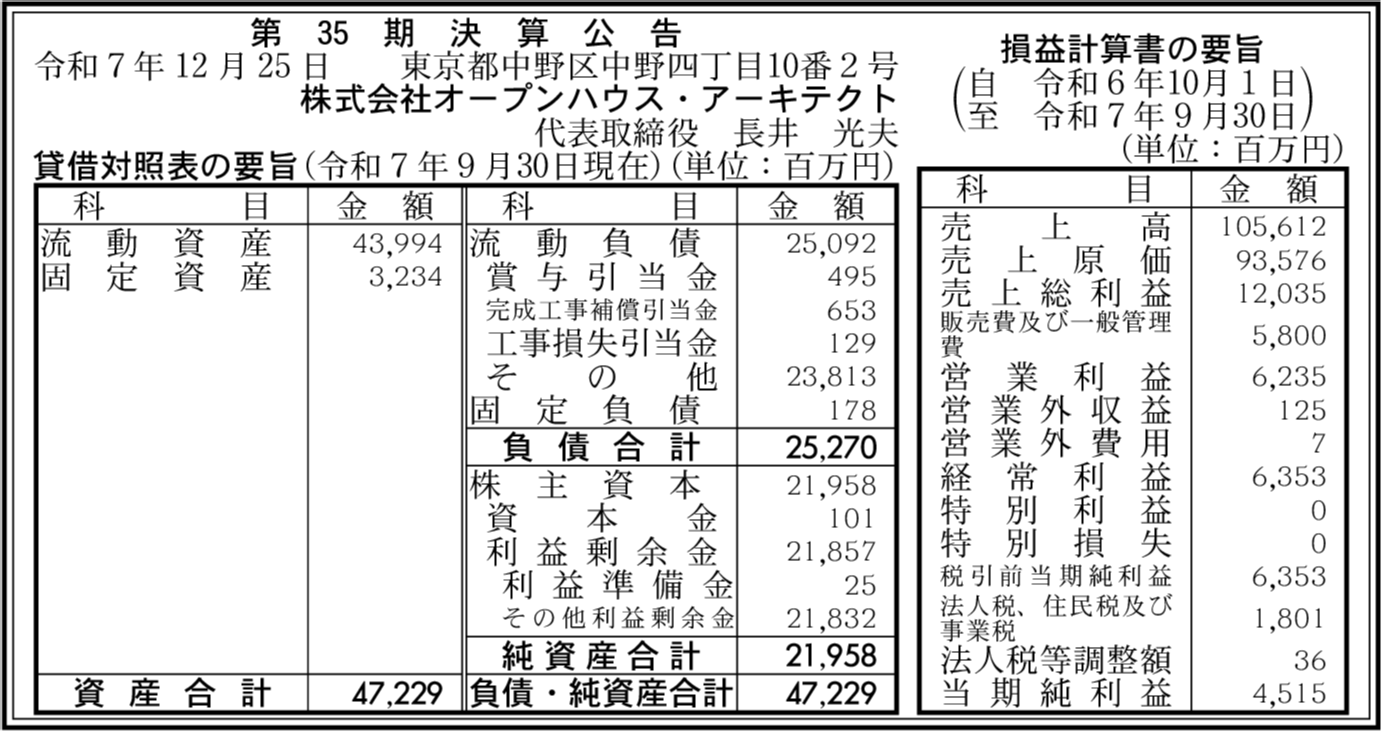 | 会社名 | 株式会社オープンハウス・アーキテクト |