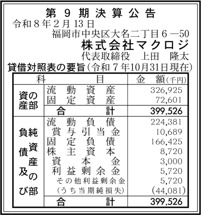 フレンダー株式会社 福岡県福岡市中央区 【2025年9月期】 |