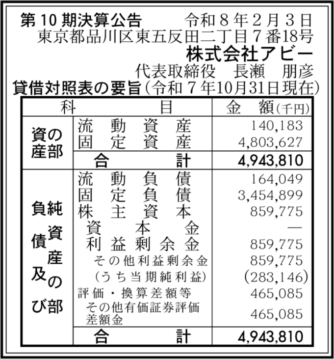 | 会社名 | 株式会社アビー |