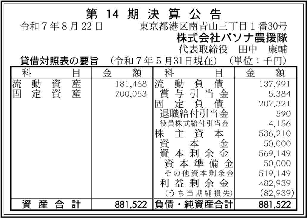 株式会社パソナHS 東京都港区 【2025年5月期】 |
