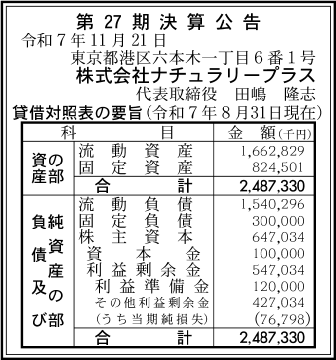 | 会社名 | 株式会社ナチュラリープラス |