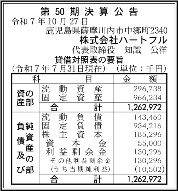 | 会社名 | 株式会社ハートフル |