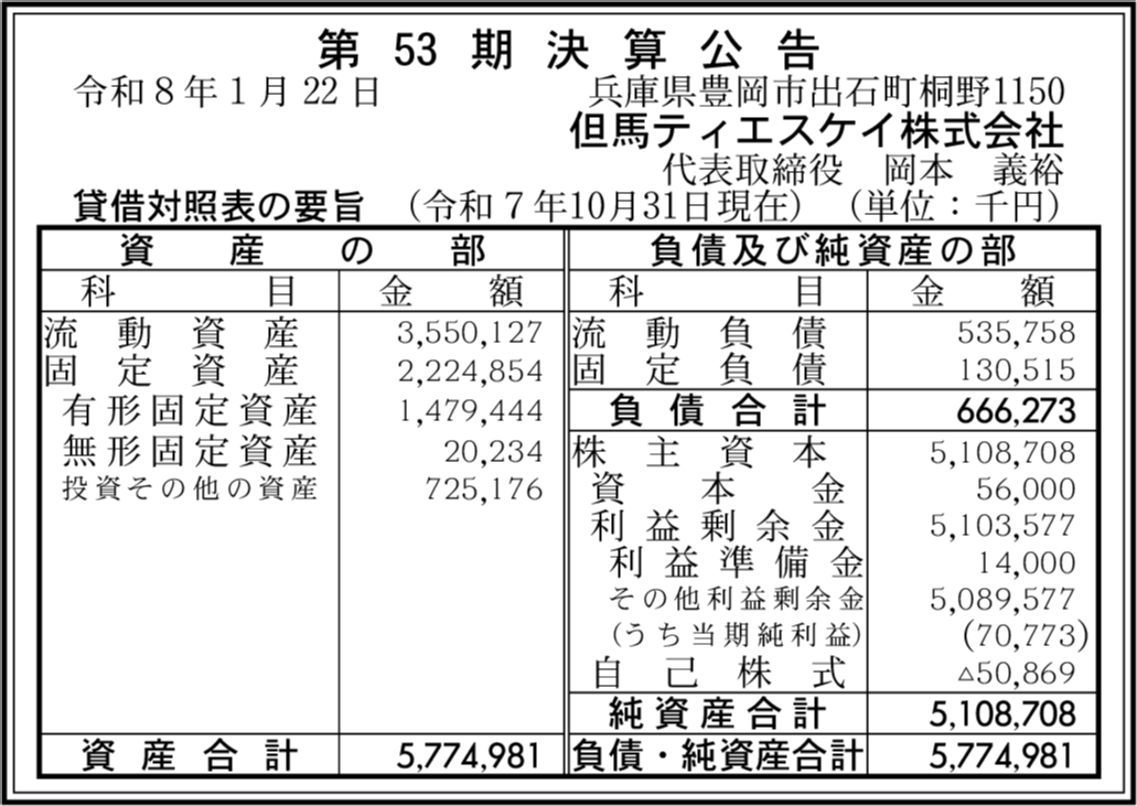 京丹TSK株式会社 京都府京丹後市 【2025年10月期】 |