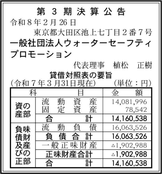 | 会社名 | 一般社団法人ウォーターセーフティプロモーション |