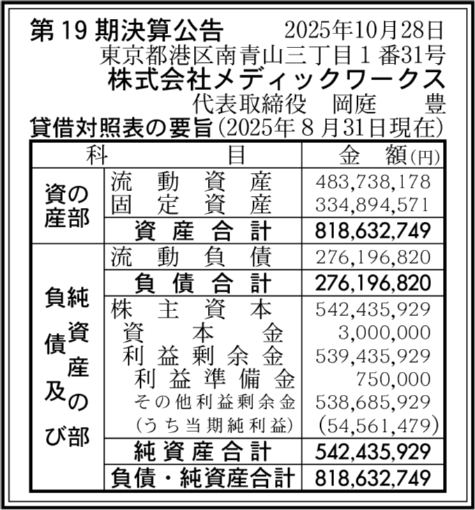 株式会社メディックメディア 東京都港区 【2025年2月期】 |