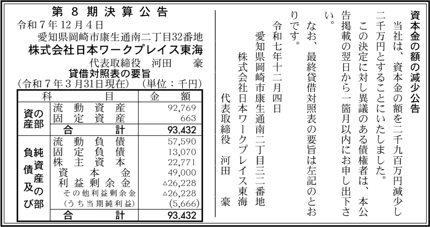 | 会社名 | 株式会社日本ワークプレイス東海 |