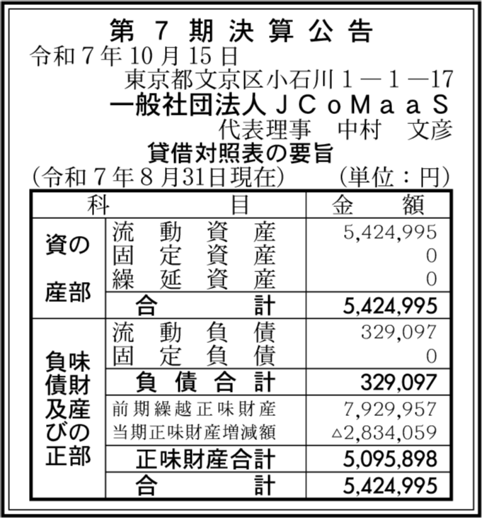 | 会社名 | 一般社団法人JCoMaaS |
