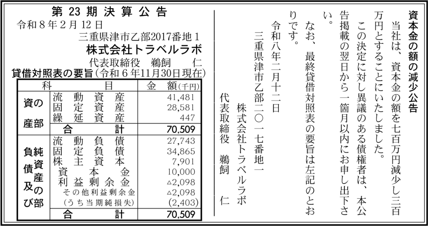 | 会社名 | 株式会社トラベルラボ |
