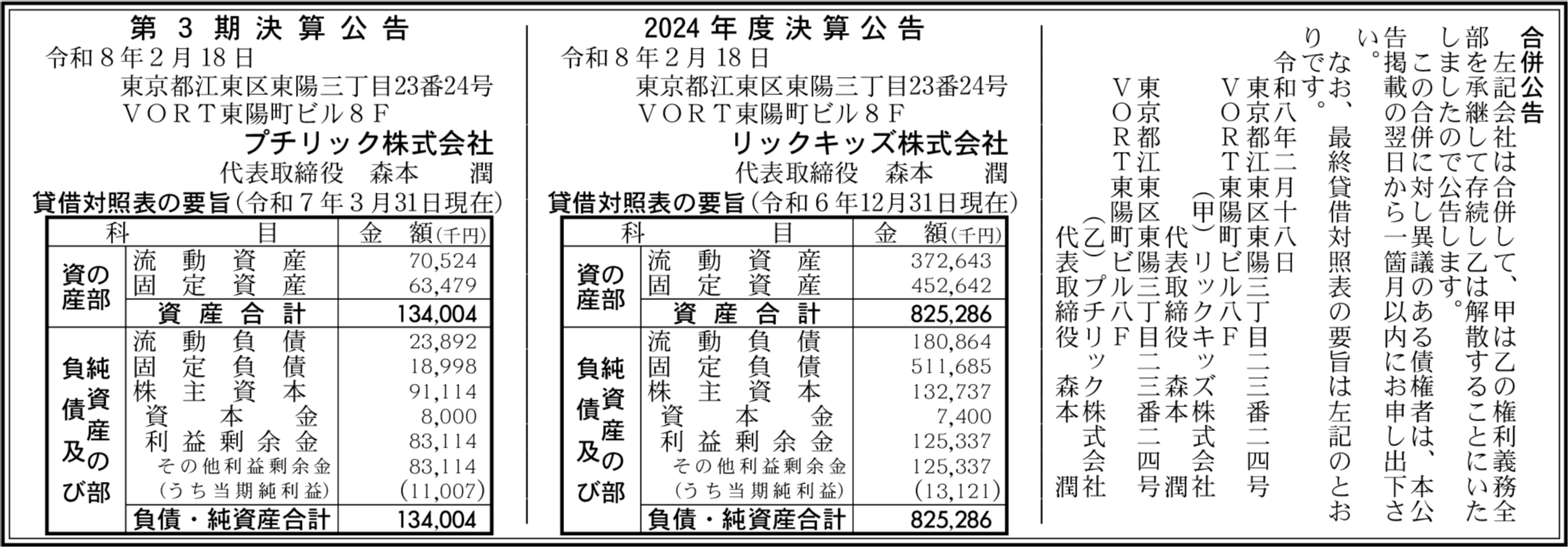 リックキッズ株式会社 東京都江東区 【2024年12月期】 |