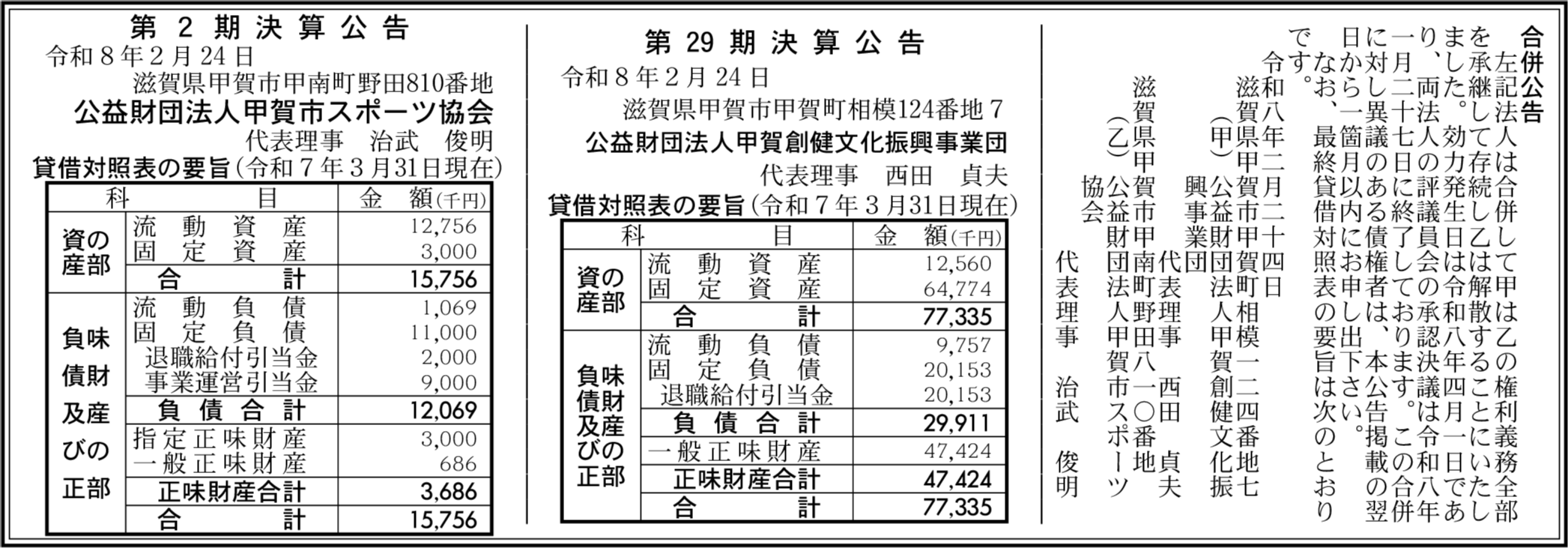 公益財団法人甲賀創健文化振興事業団 滋賀県甲賀市 【2025年3月期】 |
