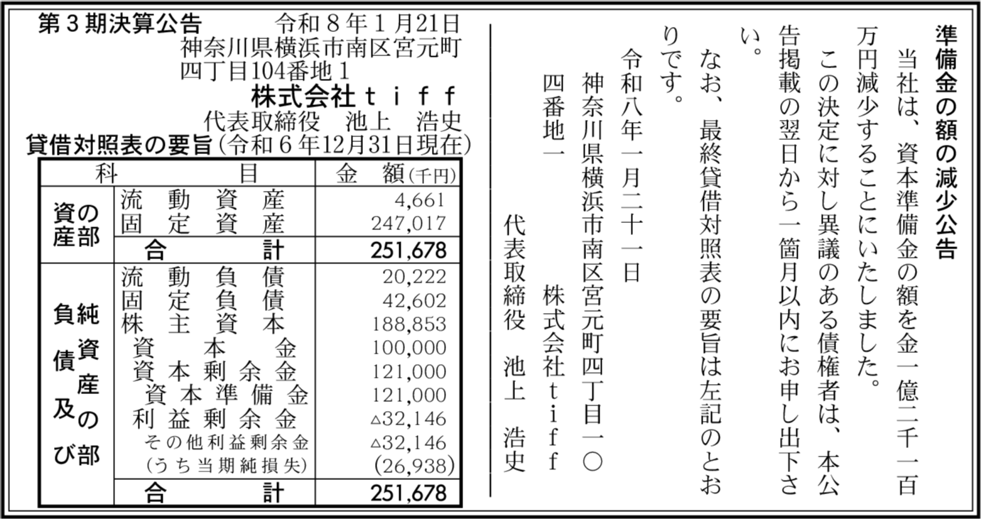| 会社名 | 株式会社tiff |